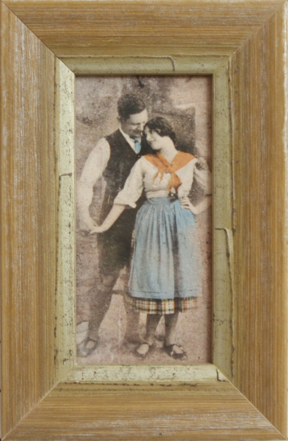 Vintage print of Victorian woman with script, wood frame with silver highlights